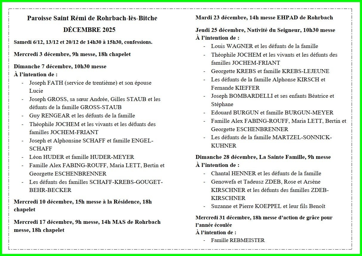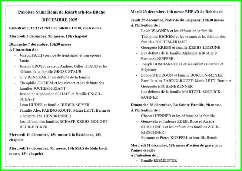 Lundi 1er décembre, à 14 heures 30, en l'église de Rohrbach, funérailles de Mme Odette Beckrich.